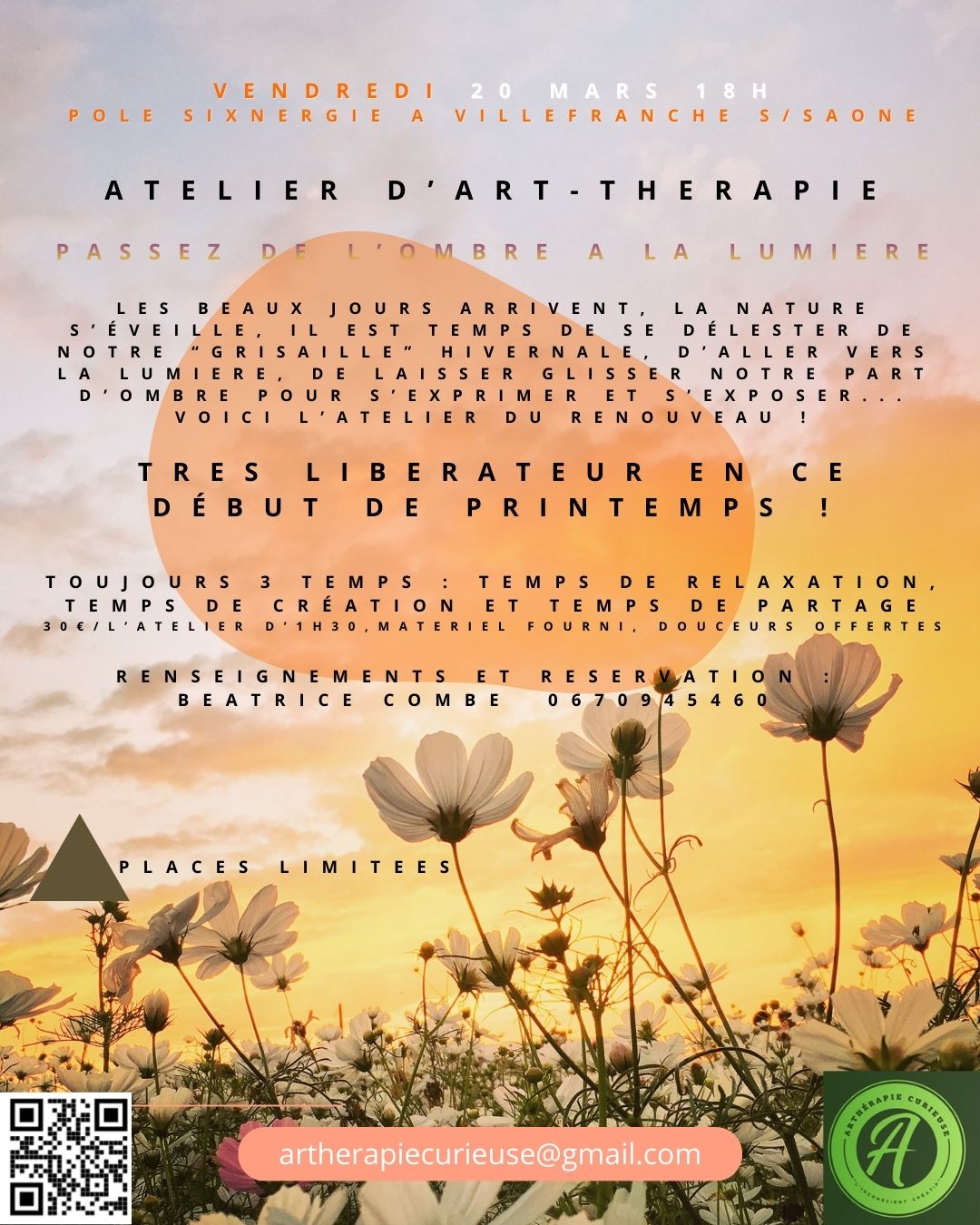 NOUVEAU ! Atelier à thème pour EVJF hors du commun ou autre évènement : Plongez dans une bulle de créativité et de bien-être. Chez vous ou dans un cadre privatisé, nous construisons ensemble un atelier sur mesure, en lien avec vos envies et votre budget. Entre rires, partage et exploration artistique, la future mariée repartira avec un souvenir unique et des émotions gravées à jamais. Pour bloquer la date 0670945460 ou artherapiecurieuse@gmail.com – Détails dans blog