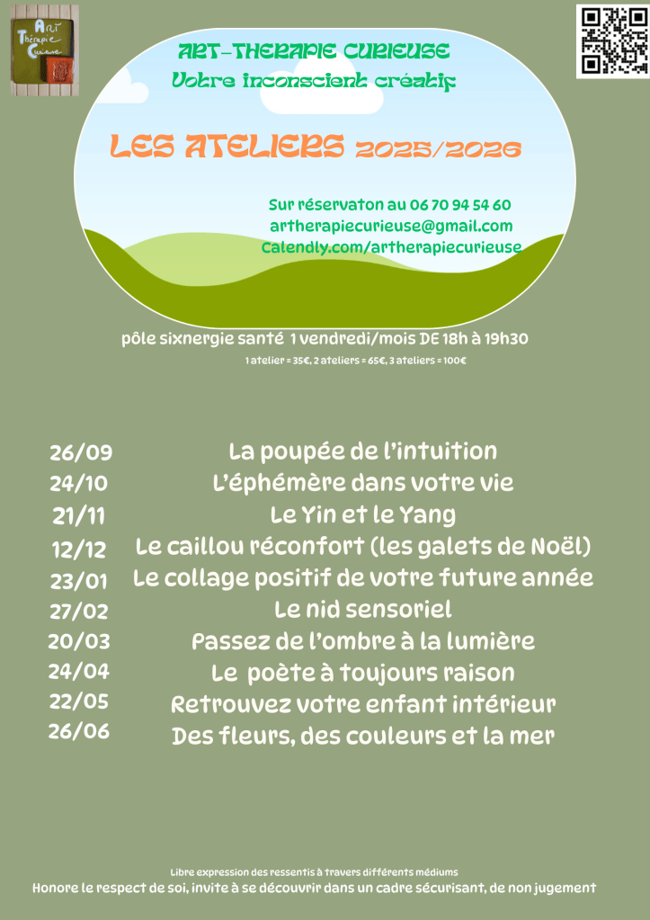 Renseignements Arthérapie Curieuse au 06 70 94 54 60